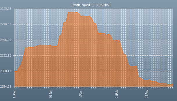 Freightos/Xeneta/Drewry Container indice China/East Asia to North Europe, in $/cont, daily update