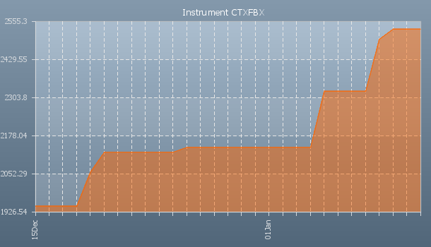 Global Freightos/Xeneta/Drewry Container Index, in $/cont, daily update
