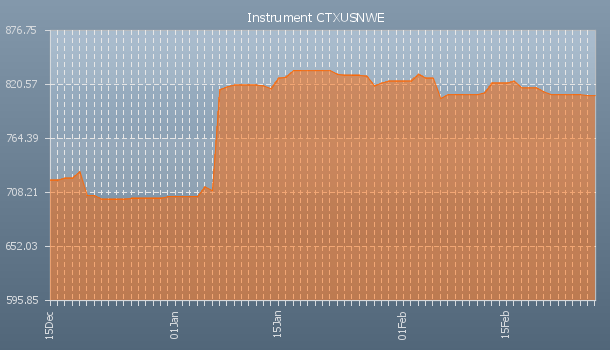 Freightos/Xeneta/Drewry Container indice North America East Coast to North Europe, in $/cont, daily update