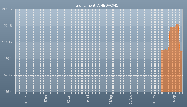 French Milling Wheat >=180 HBG >=10.5% pro, CPT Truck Vienne/Charente, July basis including Tax, excluding Cost of Carry, in Euro/mT, daily update